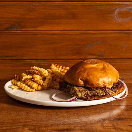 Kırmızı soğan, tereyağlı özel burger sos ve cheddar peyniri.